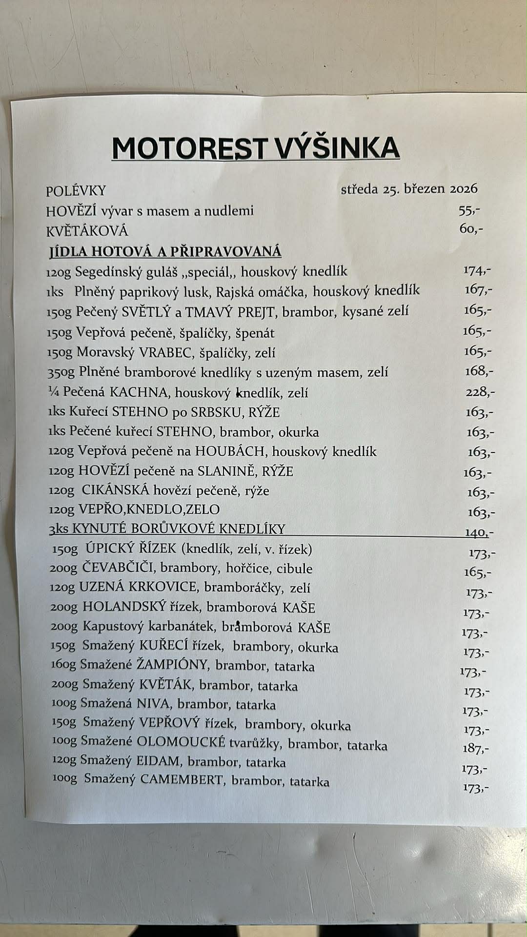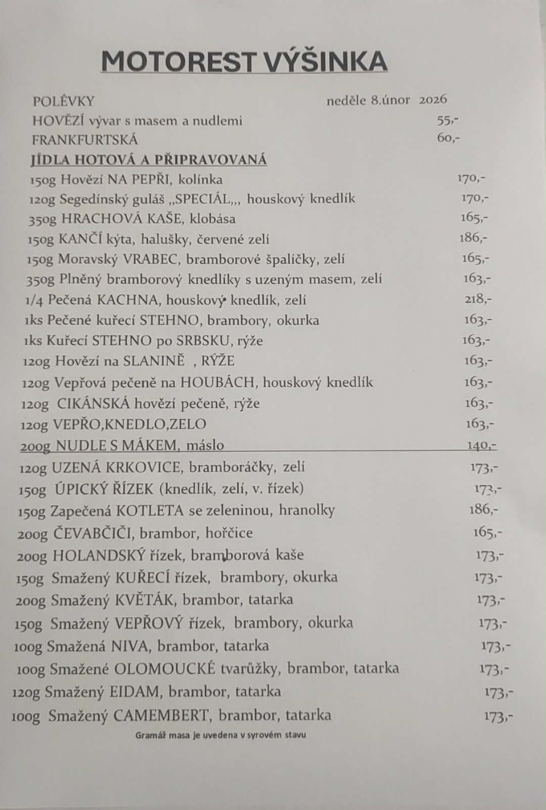 ZAVOLAT 499329475Vítáme Vás v naší restauraci Motorest Na Výšince. Máte rádi českou kuchyni ? Pak se zastavte právě u nás, nabízíme výběr převážně klasických jídel české domácí kuchyně.